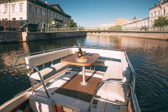 Дополнительно на борт вы можете заказать кейтеринг, оформление цветами, экскурсовода, музыкантов или воздушные шары.