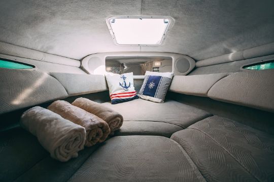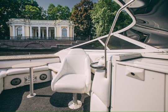На борту для вашего удобства: — 4 каюты, 4 санузла с душем — 4 Зоны для загара и отдыха — Музыкальная система по всему периметру борта и внутри (подключение Bluetooth) — Пледы, посуда, 2 холодильника, гриль